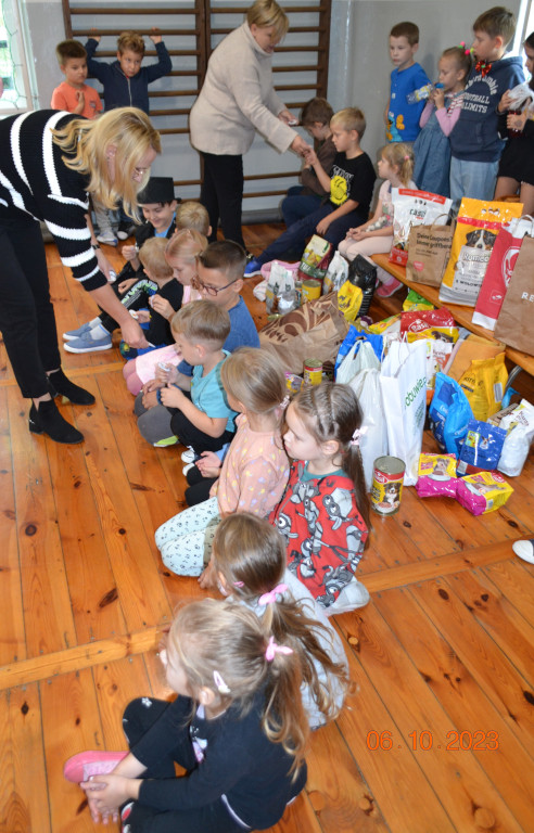 W dniach 2-6 października 2023 roku odbyła się w naszej szkole     i przedszkolu, zbiórka żywności i potrzebnych artykułów na rzecz bezdomnych psów i kotów ze Schroniska Baros w Suchedniowie. Zorganizowana została przez Bibliotekę szkolną, Samorząd Uczniowski i Szkolny Klub Wolontariatu, w ramach obchodów Miesiąca dobroci dla zwierząt (październik). Wszyscy darczyńcy otrzymali odznakę Przyjaciela zwierząt. Bardzo dziękujemy za bezinteresowne wsparcie naszej akcji.