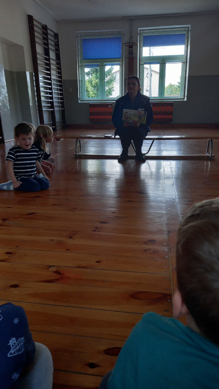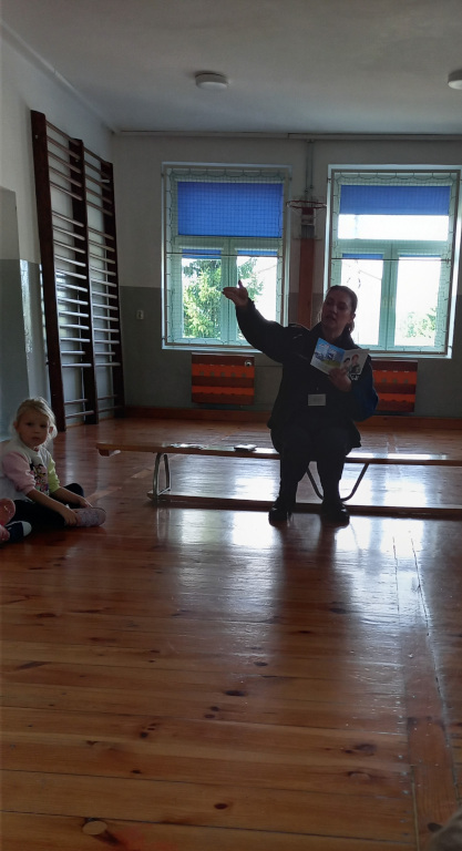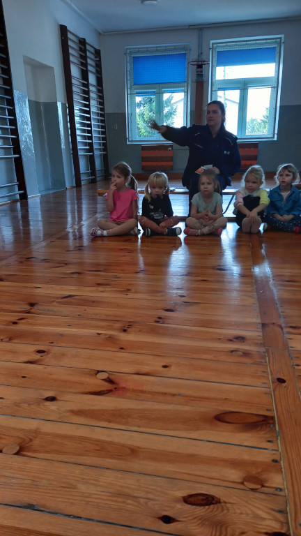 W czwartek gościliśmy w przedszkolu panią Anię z Komendy Powiatowej Policji w Skarżysku Kamiennej. Przedszkolaki wysłuchały opowiadań o pierwszej pomocy i numerze 112. Dowiedziały się , kiedy można korzystać z tego numeru. Zaśpiewały piosenkę ,,Halo, pani policjantko”.