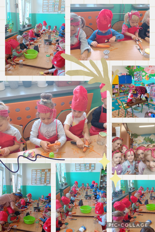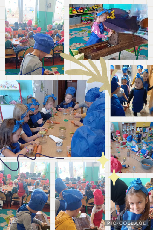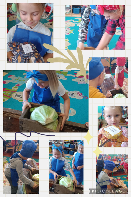 We wtorek dzieci z grupy Żabki i Zuchy brały udział w zajęciach z kieszeni kapusty. Dzieci miały okazje poznać kapustę wszystkimi zmysłami (wzrok, smak, zapach, dotyk) i dowiedzieć się, jak dawniej przygotowywano zapasy na zimę. W drugiej części zajęć dzieci przygotowały kapustę do kiszenia. Poszatkowaną kapustę wrzuciły do przygotowanego w tym celu słoika i każdą warstwę posypywały solą. Należy wspomnieć, że nie zapominały o jej dokładnym ugnieceniu w słoiku tak, aż kapusta puściła sok. Dzieci wytrwale pracowały pod czujnym okiem swoich pań.