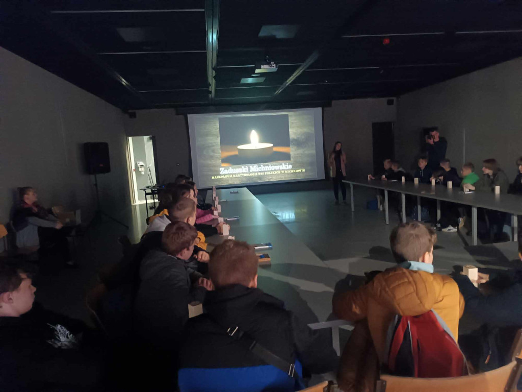 24 października rano klasy starsze wraz z wychowawcami wyruszyli na wycieczkę. Pierwszym celem było Mauzoleum Martyrologii Wsi Polskich w Michniowie. Jest to szczególne miejsce pamięci. Dwudniowa pacyfikacja Michniowa 12 i 13 lipca 1943 roku obróciła wieś w zgliszcza i pogorzelisko. Ci, co przeżyli wiedzieli, że pamięć o pacyfikacji musi przetrwać. Dlatego też powstało to miejsce, w którym prezentowane są wystawy nawiązujące swą wymową do roli mieszkańców wsi w latach 1939–1945, a także ofiar jakie poniosły wioski na terenie całej Polski. Zwiedzanie tego miejsca składa się z dwóch części: z oglądania ekspozycji wewnątrz budynku oraz w części otwartej. Wystawa prowadziła nas przez kolejne części, które pokazują ogrom i okrucieństwo drugiej wojny światowej. W muzeum znajduje się wiele pamiątek i zdjęć pozostałych po zamordowanych mieszkańcach wsi. Wszyscy czuliśmy podniosłość tego miejsca, a zwiedzanie odbywało się w ciszy i zadumie. Później uczestnicy wycieczki wzięli udział w warsztatach przygotowanych przez pracowników muzeum. Tematem zajęć były Zaduszki, czyli temat aktualny ze względu na zbliżający się czas Wszystkich Świętych. Usłyszeliśmy o tym, jak kiedyś obchodzono to święto i jak obchodzi się je w innych krajach. Warsztaty te były prowadzone w oparciu o ciekawą prezentację multimedialną, która przykuła uwagę wszystkich. Później każdy miał okazję wykonać świeczkę własnego projektu. Niektórzy wykazali się niezwykłą kreatywnością i oryginalnością. Efekty pracy można podziwiać na niektórych zdjęciach załączonych do relacji.
