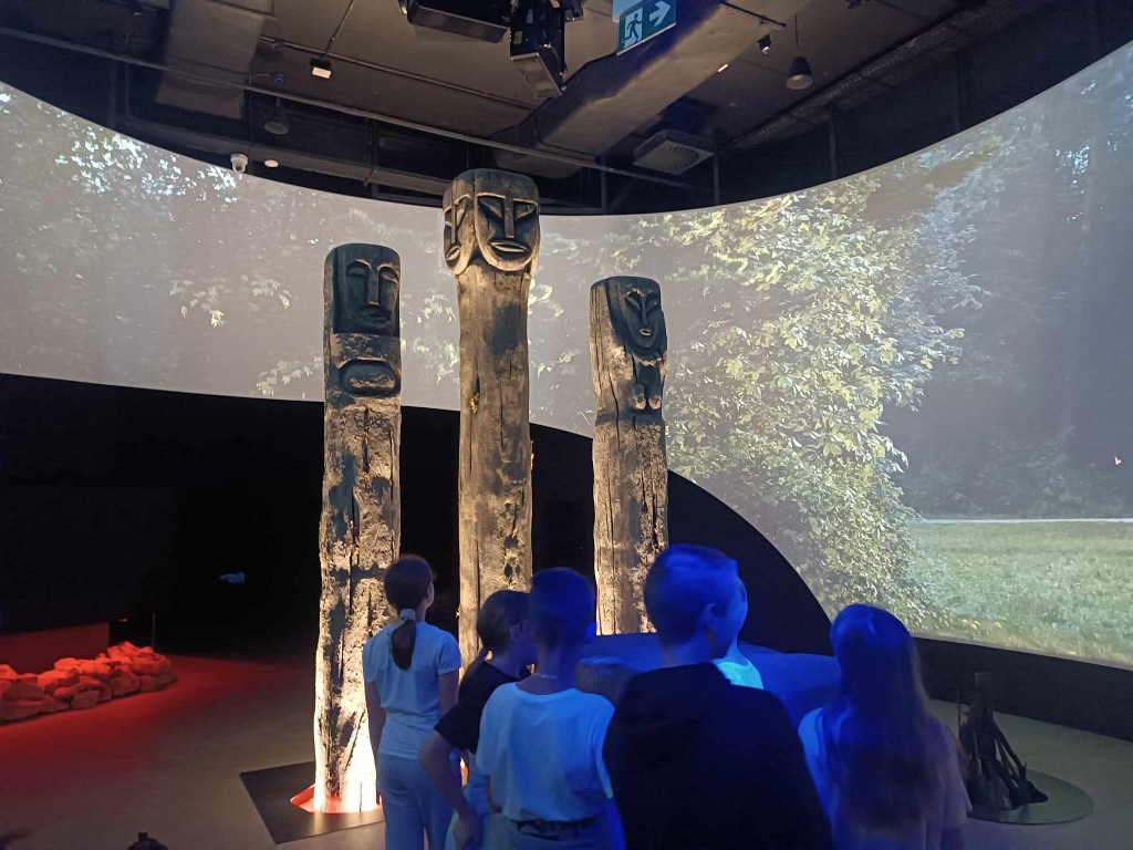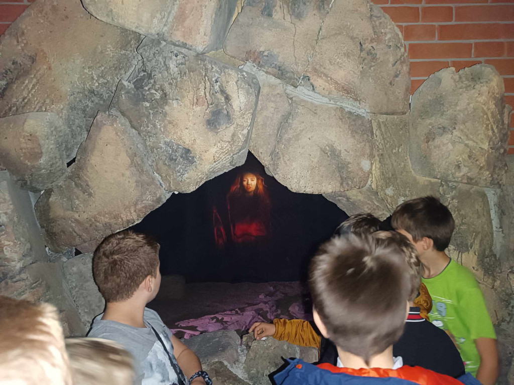 Kolejnym punktem wycieczki był Park Legend w Nowej Słupi. Jest to miejsce magiczne, łączące w ciekawy sposób nową technologię z elementami teatru. Poznaliśmy tu wiele ciekawych legend, baśni i folklor Gór Świętokrzyskich. Usłyszeliśmy legendę o pielgrzymie świętokrzyskim, o powstaniu Kielc, Kakonina, czy o obronie Sandomierza. Wszystko to poznawaliśmy niejako od wewnątrz, będąc naocznymi świadkami tych opowieści. Weszliśmy w bramy piekieł, gdzie na naszej drodze pojawił się diabeł, a później mogliśmy dotknąć madejowego łoża, zobaczyliśmy jak powstało gołoborze.