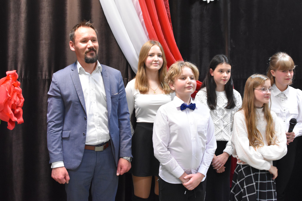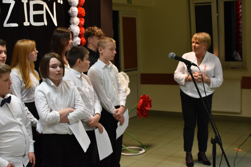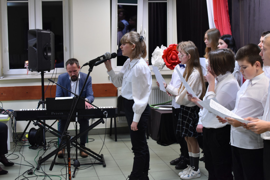 W listopadzie nasze myśli i uczucia kierujemy w stronę ojczyzny. Wspominamy wydarzenia, które przyczyniły się do odzyskania przez nasz kraj niepodległości. Uczniowie szkoły wraz z nauczycielem muzyki p. Grzegorzem Jasińskim upamiętniając bohaterów walczących w obronie Polski przygotowali Wieczornicę Patriotyczną, która odbyła się 13 listopada w Gminnej Bibliotece Publicznej w Łącznej. W spotkaniu wzięli udział licznie zgromadzeni mieszkańcy gminy, przedstawiciele „Stowarzyszenia Hubalczycy 1939 – 1940”, pasjonat osoby Eugeniusza Gedymina Kaszyńskiego „Nurta” p. Robert Kowalski, przedstawiciele stowarzyszenia „Seniorzy Razem” w Łącznej, Radni i Sołtysi Gminy Łączna. Na zakończenie koncertu pieśni patriotycznych uczniowie otrzymali od Dyrektor Biblioteki p. Beaty Kołda okolicznościowe upominki. Gratulujemy uczniom udanego występu i zapraszamy do udziału w wieczornicy już w przyszłym roku.