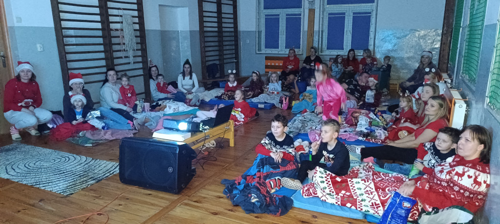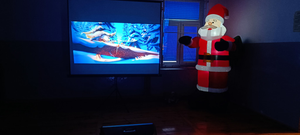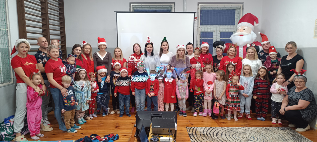 9 grudnia 2023 r przedszkolaki w raz z rodzicami wzięli udział w zorganizowanym w naszym przedszkolu ,,Mikołajkowym Wieczorze Filmowym”. Celem spotkania było wprowadzenie dzieci w świąteczny nastrój związany ze Świętym Mikołajem, integracja podczas wspólnej zabawy oraz kształtowanie umiejętności słuchania . Wszyscy uczestnicy tego wspaniałego wieczoru mieli na sobie element ubrania mikołajkowego . Tak mile rozpoczęty okres świąteczny przyniósł wszystkim wiele radości.
