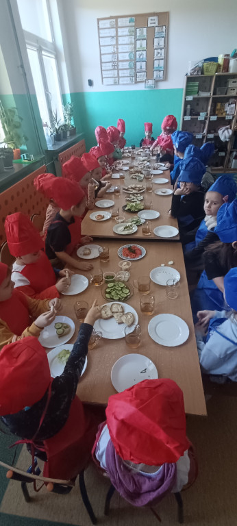 Zdrowe śniadanie – zdrowe ciało: Przedszkolaki z grupy Żabki i Zuchy w doniu 30 stycznia brały udział w warsztatach kulinarnych, podczas których nauczyły się, jak przygotować zdrowe śniadanie. Sami je przygotowali dowiadując się jak ważna jest zbilansowana dieta a następnie zjedli to, co przygotowali, to pomogło im zrozumieć, jak ważne jest śniadanie dla ich zdrowia i rozwoju.