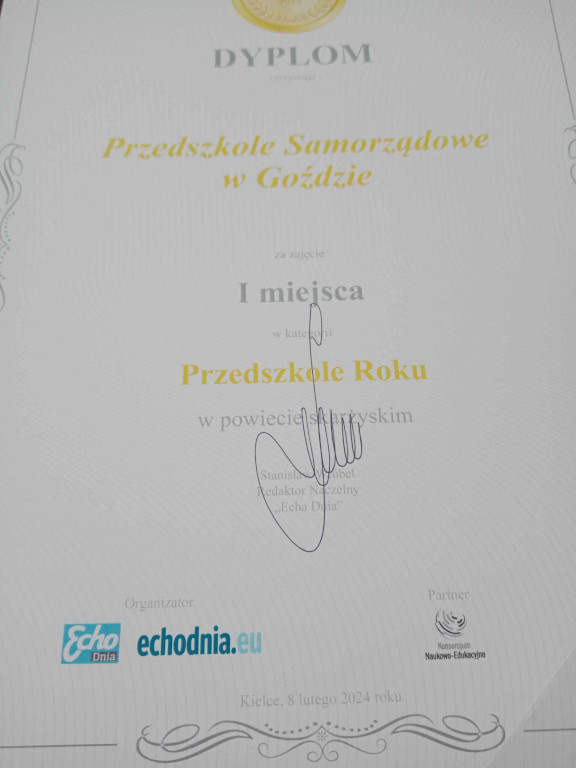 Starania i działania pracowników przedszkola zostały docenione i wyróżnione w Plebiscycie Edukacyjnym 2023 organizowanym przez Echo Dnia. Dziękujemy wszystkim za nominację i oddane głosy. Szczególnie wyrazy podziękowania kierujemy do Rodziców naszych Żabek i Zuchów.