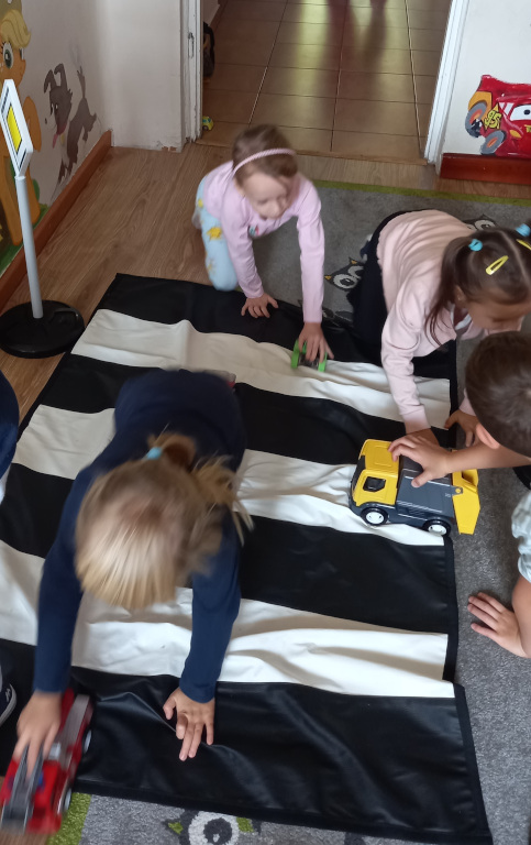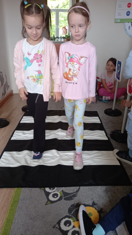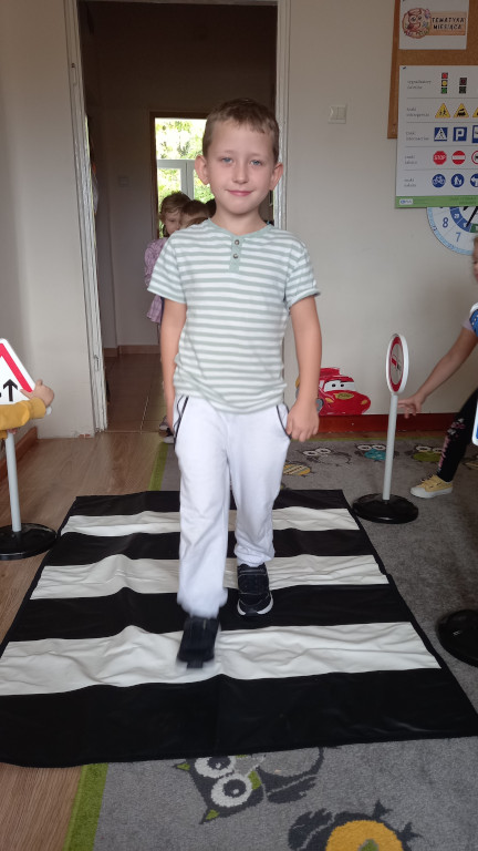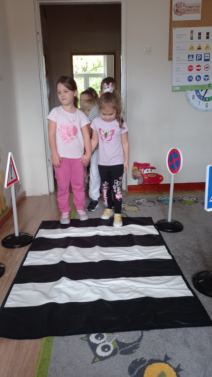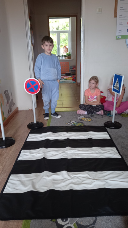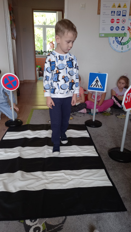 Grupa Sówki poznała zasady bezpieczeństwa na drodze. Nabytą wiedzę trenowała w trakcie praktycznych ćwiczeń. Podzieliła się też swoimi doświadczeniami z życia wziętymi, o tym, że należy zapinać pas bezpieczeństwa w aucie, nosić odblaski, uważać na przejściu dla pieszych.