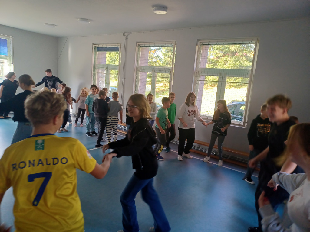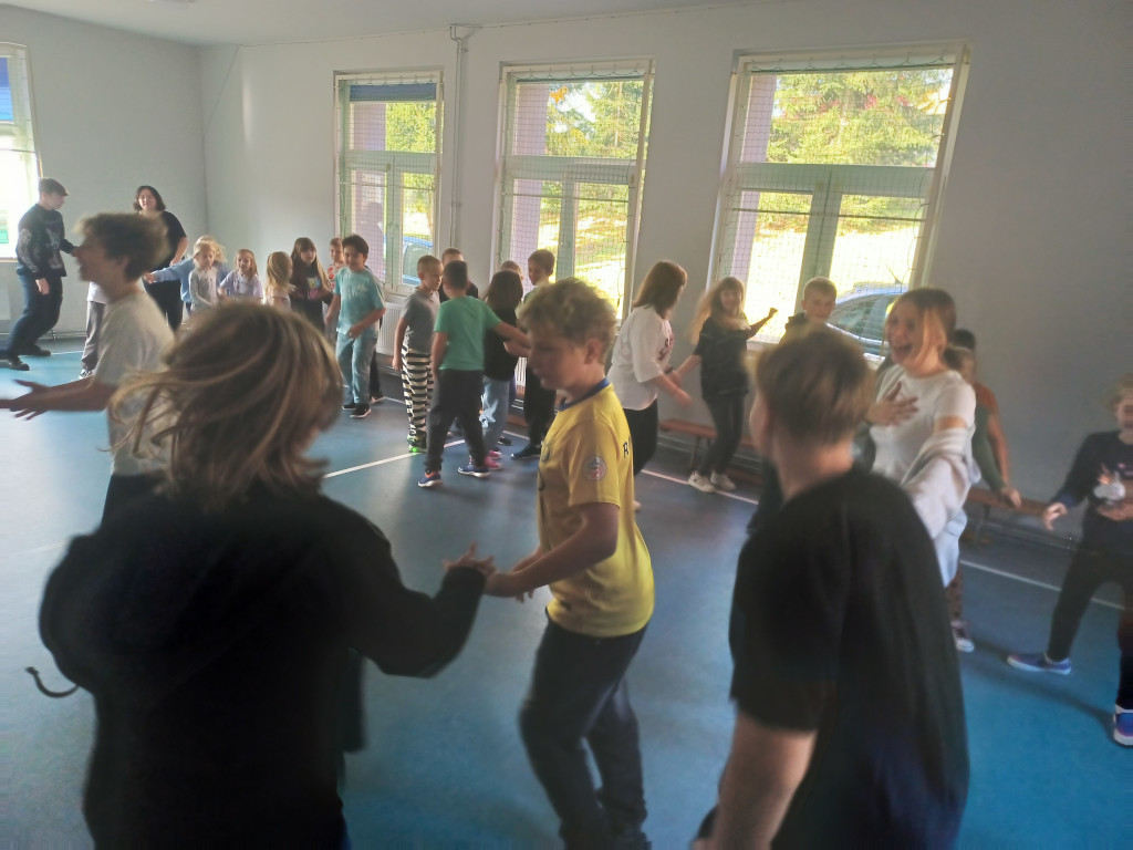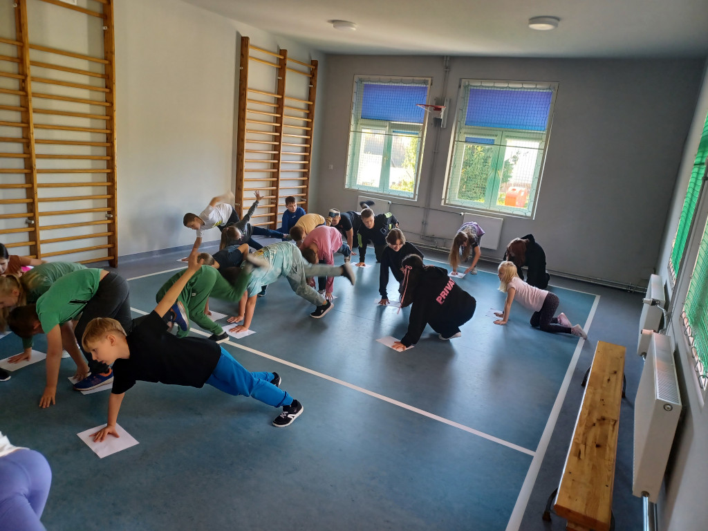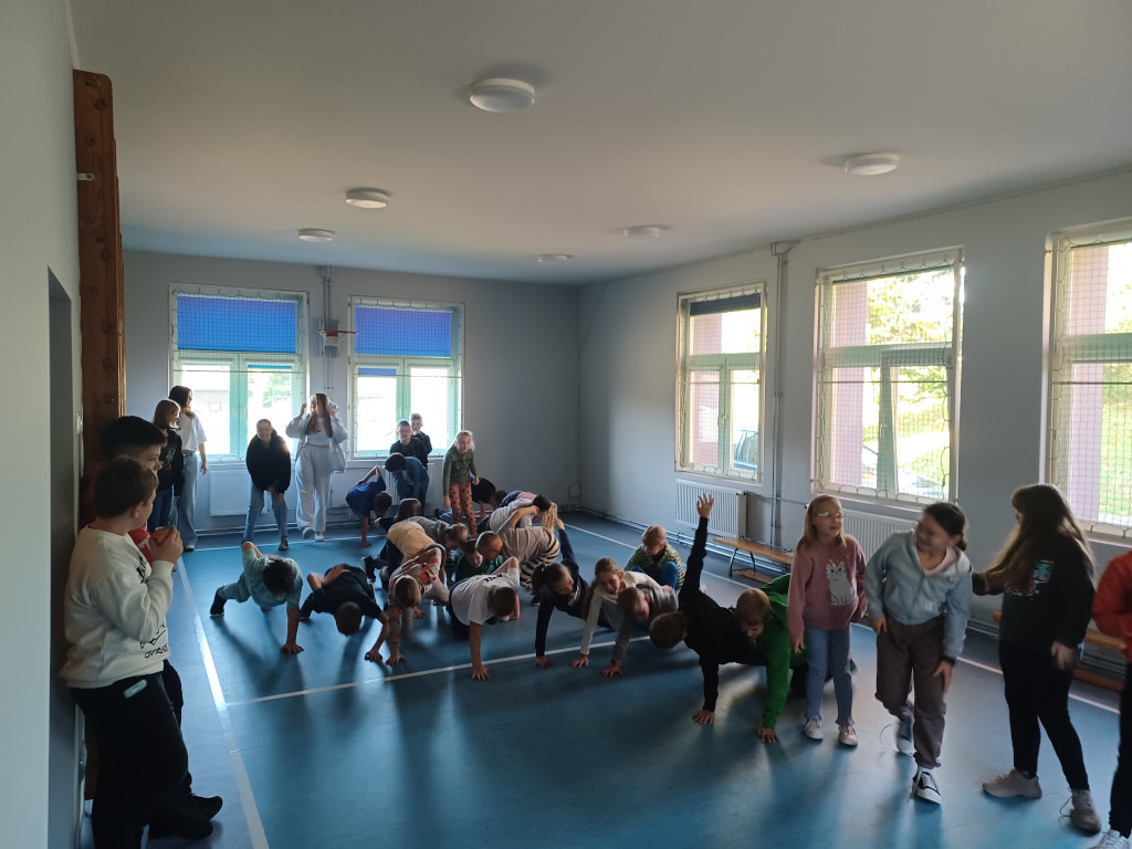 Spędzanie przerw aktywnie to doskonały sposób na relaks i odprężenie po wysiłku intelektualnym w trakcie lekcji. Uczniowie naszej szkoły kolejny raz prężnie wykonywali ćwiczenia fizyczne oraz uczyli się tańczyć podczas przerw międzylekcyjnych. Na pochwałę zasługuje postawa uczniów klasy ósmej, którzy swoimi umiejętnościami tanecznymi dzielili się z młodszymi dziećmi. Każda dawka ruchu wzmacnia nasze zdrowie i poprawia koncentrację.