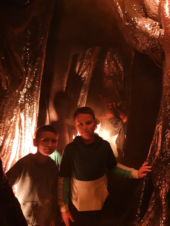 Uczniowie klas I –III wzięli udział w wycieczce do Parku Legend w Nowej Słupi. Wielką atrakcją dla uczniów klas młodszych był magiczny świat świętokrzyskich legend. Podczas spaceru multimedialną ścieżką edukacyjną  poznawali legendy i baśnie  Gór Świętokrzyskich. Park Legend to niezwykłe miejsce u podnóża Łysej Góry, gdzie można spotkać bohaterów świętokrzyskich opowieści. Nowoczesna technologia, uzupełniona przepiękną scenografią wprowadziła uczniów w świat magii i czarów. Połączenie tradycji z nowoczesnością, edukacji z rozrywką oraz natury z innowacyjnością wzbudziło u uczniów zachwyt na walorami regionu świętokrzyskiego i zaciekawienie legendarnymi postaciami tego terenu. Największe wrażenie na uczniach zrobił symulator lotu na miotle nad naszym regionem, podczas którego można było podziwiać najatrakcyjniejsze miejsca województwa świętokrzyskiego. Atrakcją zwiedzania było również  kino 5D oraz sala gier i zabaw. Park Legend to wspaniałe miejsce edukacji i wypoczynku.