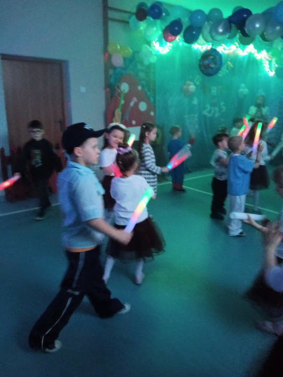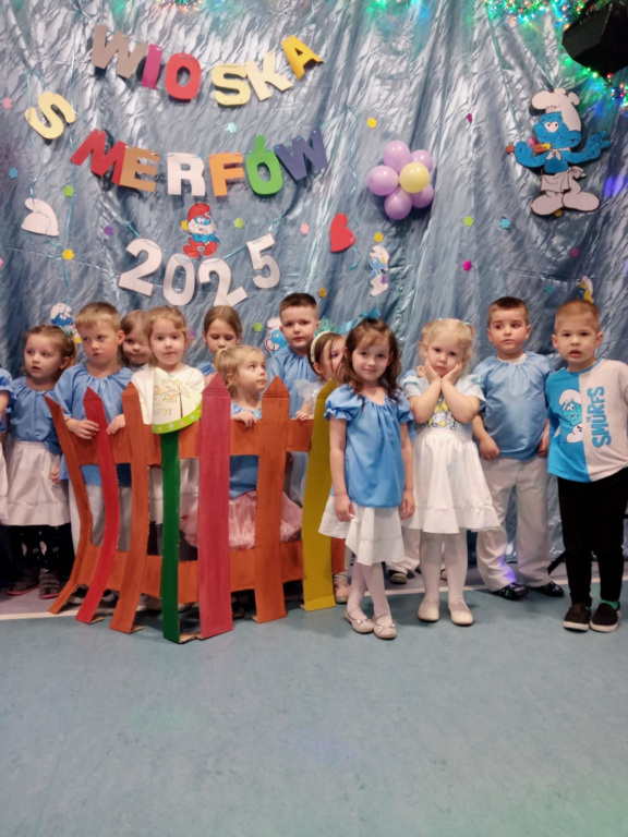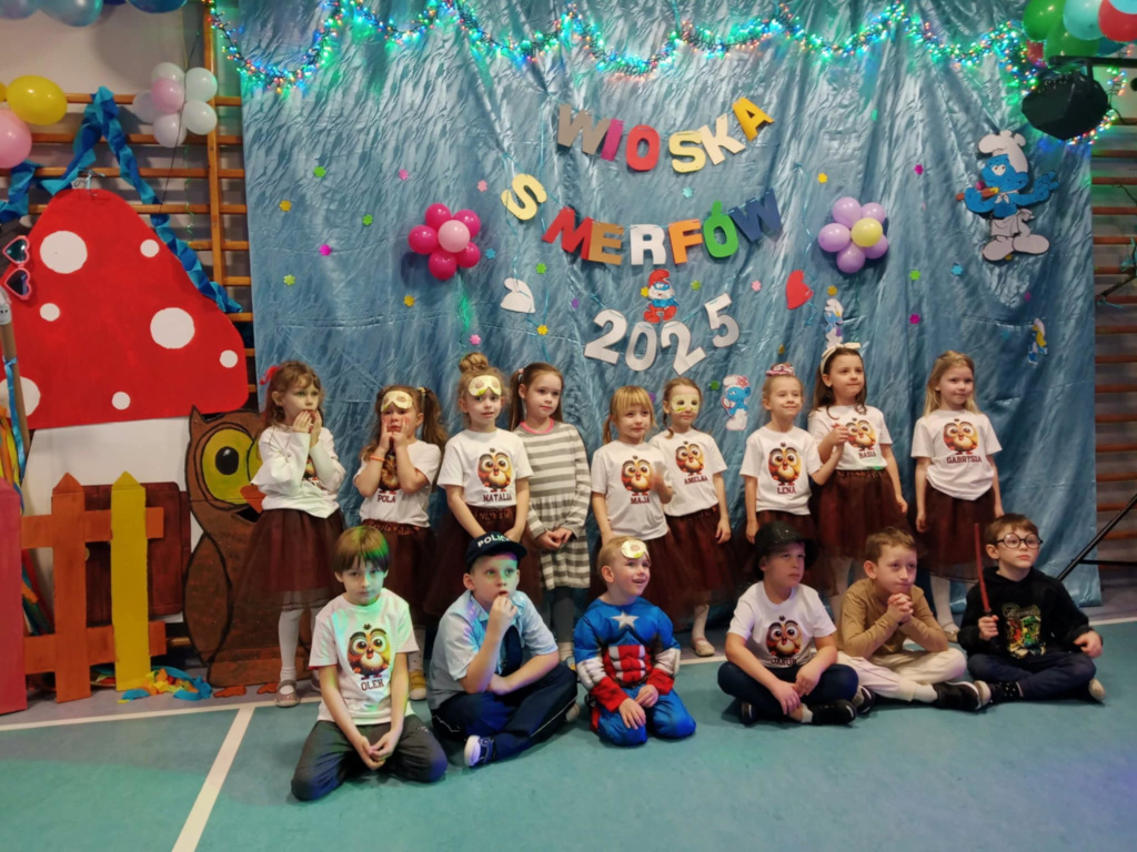 Na cudnie udekorowanej przez rodziców sali bawiły się Smerfy i Sówki. To była taneczna podróż po świecie, od Irlandii, przez Hiszpanię, Włochy, Chiny aż po Meksyk. Podróżowaliśmy pociągiem, statkiem i samolotem. Pozytywnej mocy dostarczyły karnawałowe przekąski. Pełni wrażeń i dobrych emocji uważamy, że bal karnawałowy 2025 był wyjątkowo udany. Dziękujemy wszystkim zaangażowanym w realizację przedszkolnej imprezy dla dzieci.