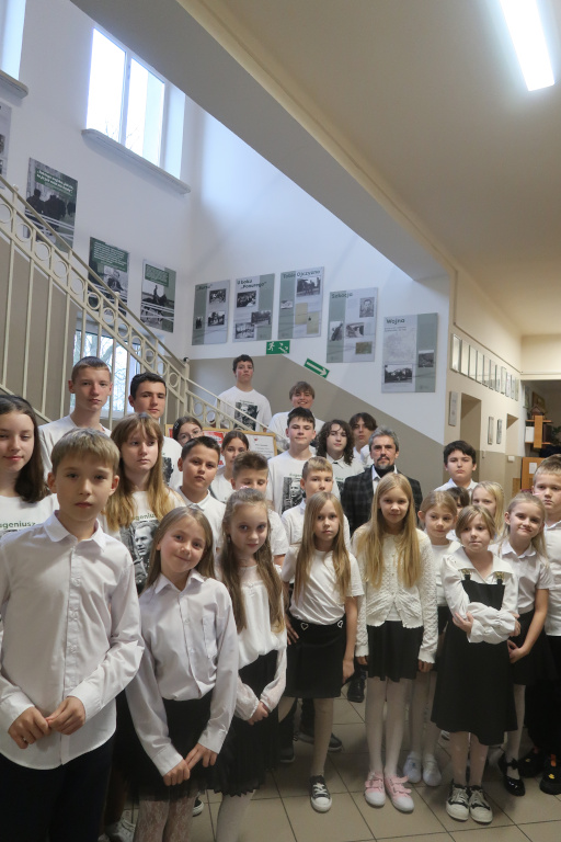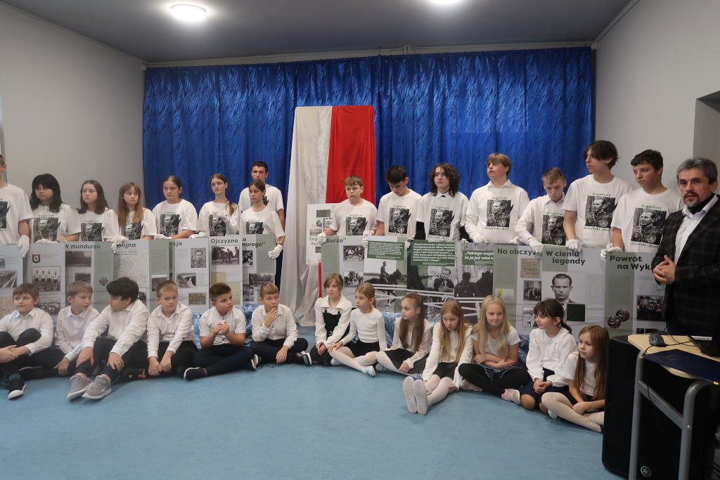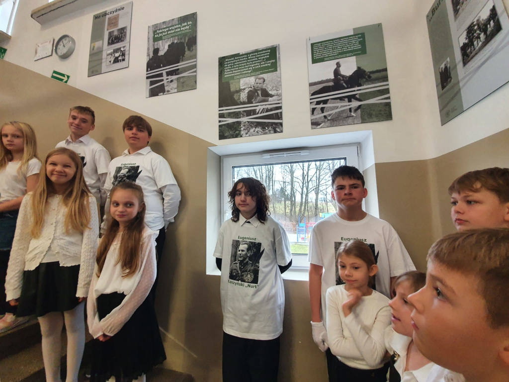 20.11. 2025r. została otwarta w murach naszej szkoły stała wystawa poświęcona patronowi Eugeniuszowi Gedyminowi Kaszyńskiemu ,,Nurtowi”. Uroczystość tę uświetnili swoją obecnością znakomici goście. Wśród nich byli m.in.: Wójt Gminy Łączna p. Wojciech Fąfara, Paweł Żołądek-przedstawiciel Naczelnika Delegatury Instytutu Pamięci Narodowej w Kielcach, Rafał Obarzanek-Prezes Środowiska Świętokrzyskich Zgrupowań Partyzanckich Armii Krajowej ,,Ponury-Nurt”.