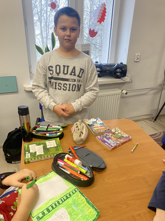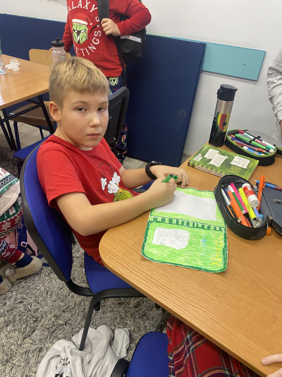 We wtorek, 25 listopada 2025 roku, podczas zajęć bibliotecznych, uczniowie klasy trzeciej tworzyli „wizytówki” swoich ulubionych książek. Każde dziecko wybrało tytuł, który szczególnie lubi, a następnie przygotowało krótką prezentację, zawierającą informacje o autorze, bohaterach oraz tym, co najbardziej podoba im się w danej książce. Uczniowie pracowali twórczo, chętnie dzielili się wrażeniami z lektury i zachęcali kolegów do sięgnięcia po prezentowane przez nich pozycje. Zajęcia miały na celu rozwijanie zainteresowań czytelniczych oraz zachęcanie do samodzielnego wybierania książek.
