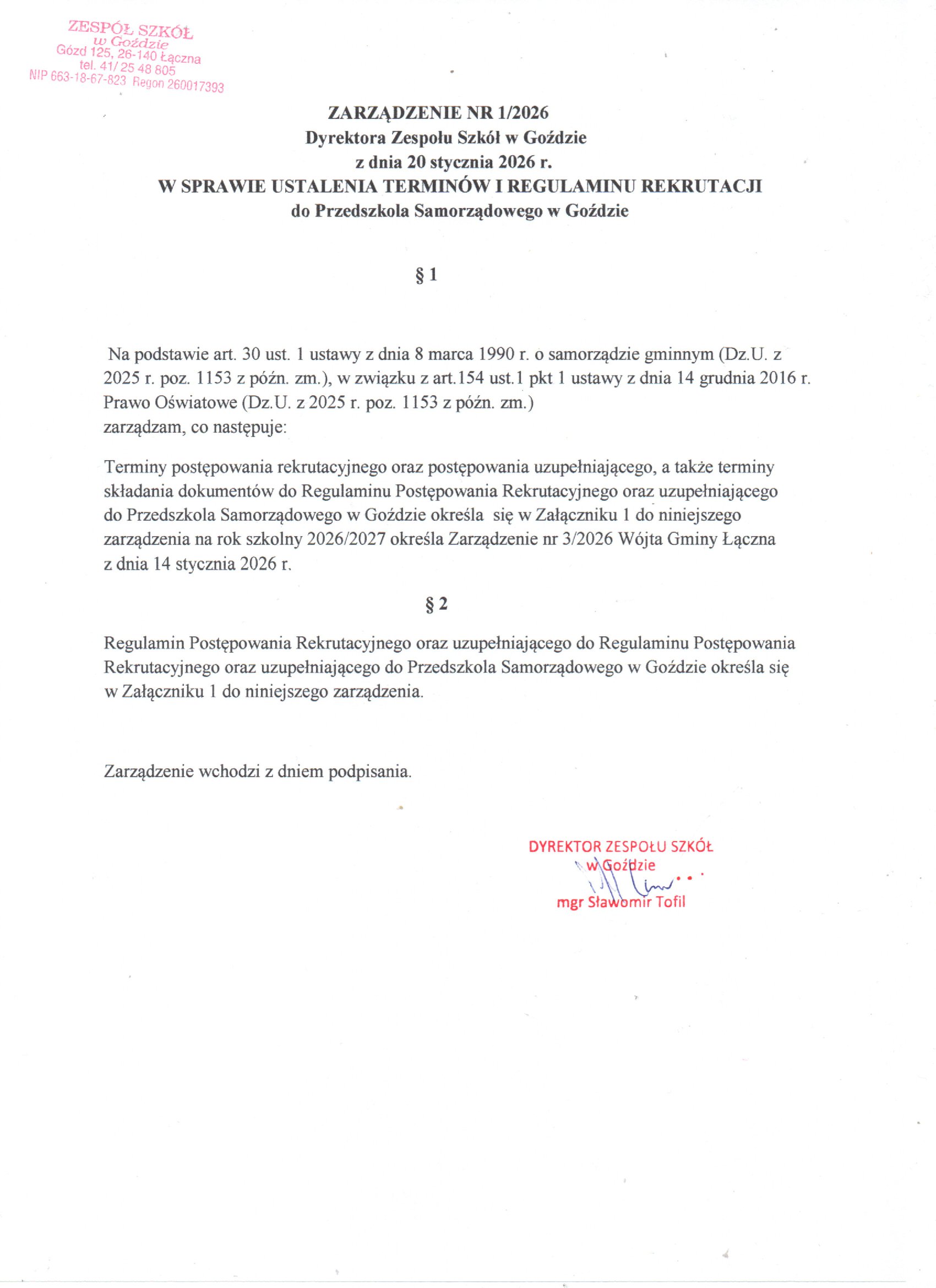 PrzedszkoleSzkoła Zarządzenie w sprawie określenia terminów przeprowadzenia postępowania rekrutacyjnego do przedszkoli i klas I szkół podstawowych 22 stycznia 2026 Admin