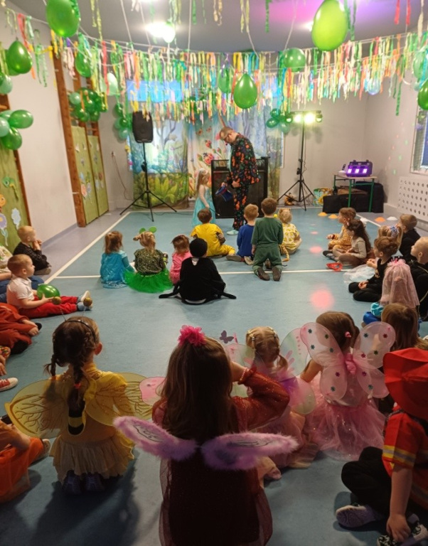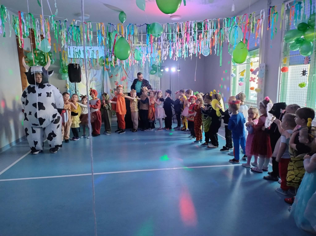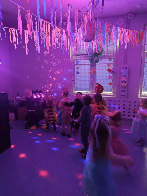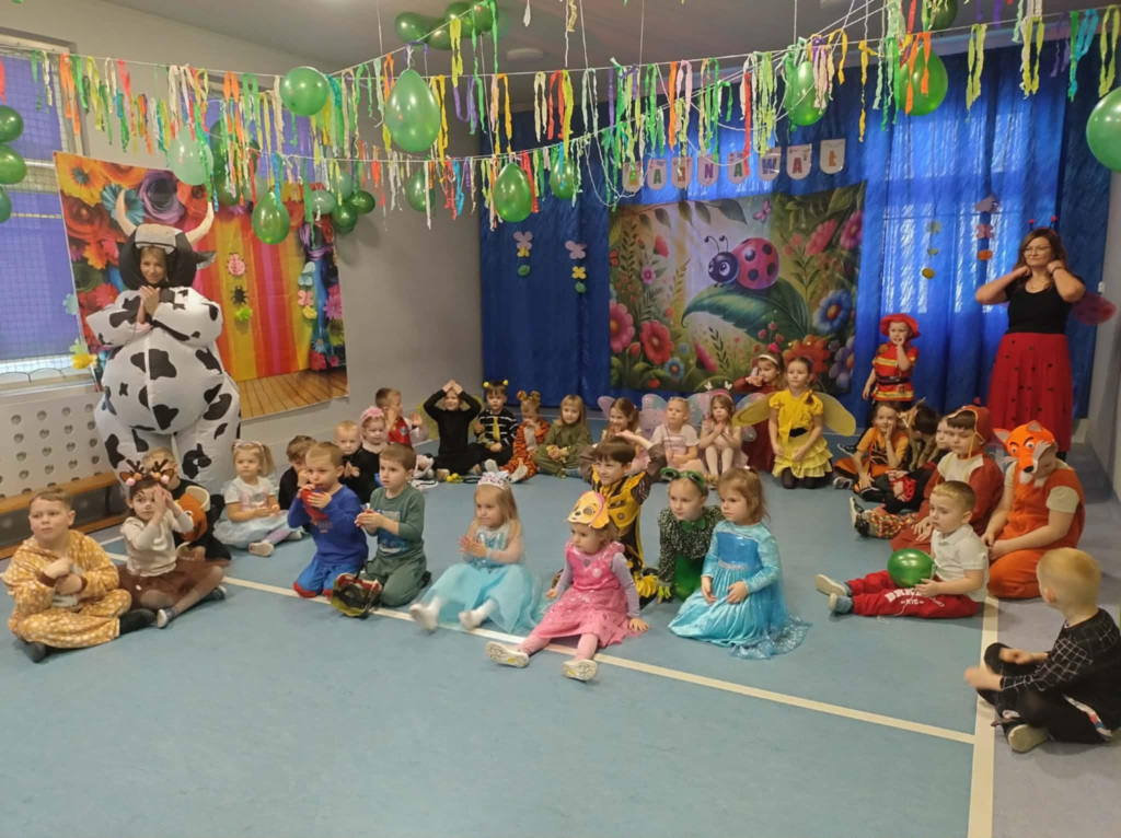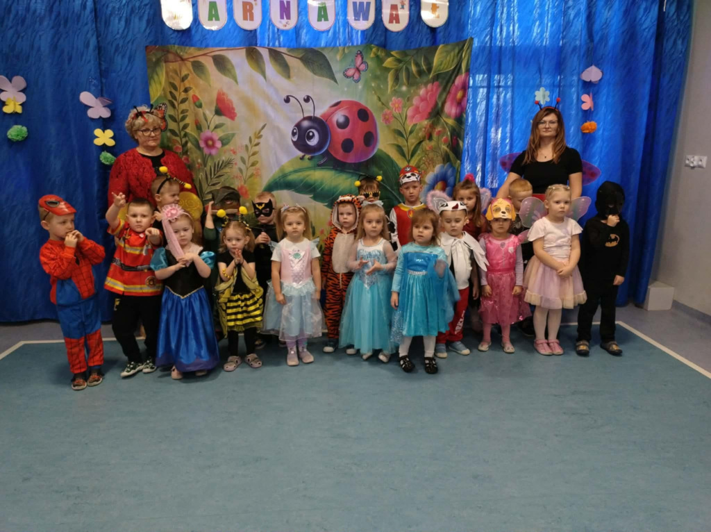 W dniu 03.02.2026r w naszym przedszkolu odbył się bal karnawałowy. Tego dnia sala zamieniła się w barwną, wiosenną łąkę pełną kwiatów, motyli i owadów . Dzieci zachwyciły wszystkich pomysłowymi strojami – na parkiecie pojawiły się biedronki, pszczółki, motylki, żabki, liski oraz inni mieszkańcy łąki i nie tylko… Przedszkolaki z radością brały udział w tańcach i zabawach ruchowych. Jedno jest pewne – na takiej łące nikt tego dnia się nie nudził.