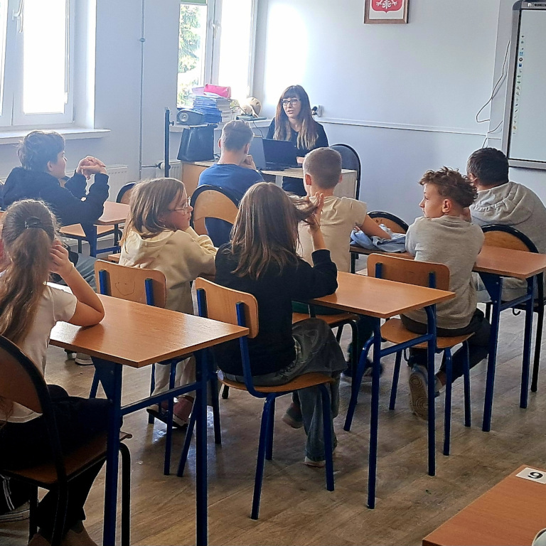 19 lutego gościliśmy w naszej szkole Panią dr Martę Dulębę wykładowcę Uniwersytetu Jana Kochanowskiego w Kielcach. W zajęciach poprowadzonych przez Panią wzięli udział uczniowie z klas