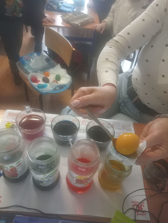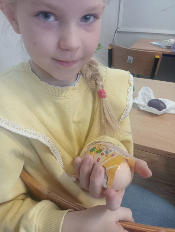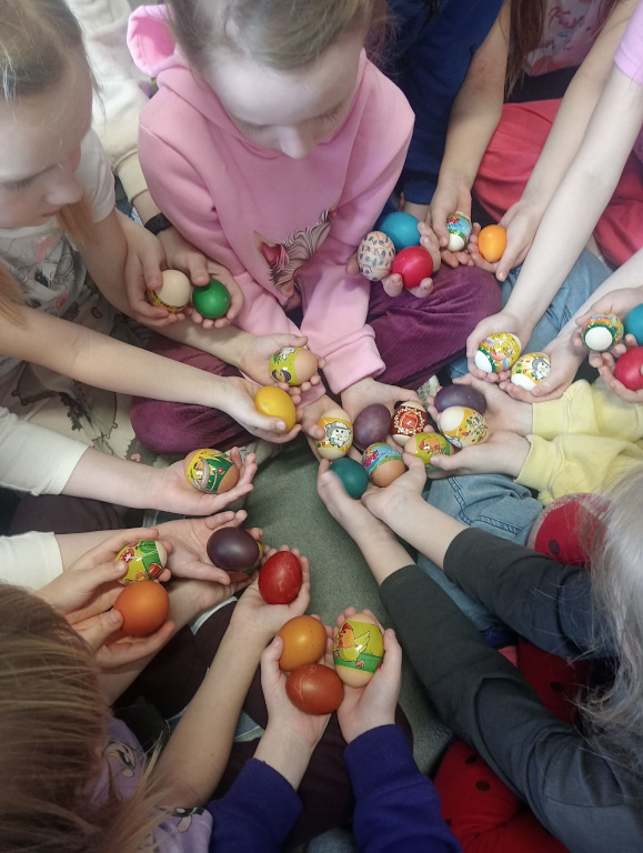 Dzieci z grupy „Świętokrzyskie Nutki” z zaangażowaniem poznają tradycje wielkanocne. W tym tygodniu odkrywały tajniki tworzenia pisanek – dowiedziały się, jak powstają oraz jakie techniki można wykorzystać do ich ozdabiania. Było bardzo twórczo i kolorowo! Dzieci ręcznie malowały, barwiły, wycinały i przyklejały różnorodne elementy, tworząc swoje własne, niepowtarzalne pisanki. Każda z nich była wyjątkowa i pełna dziecięcej wyobraźni. To wspaniała nauka przez zabawę, która pozwala pielęgnować piękne, wielkanocne tradycje.